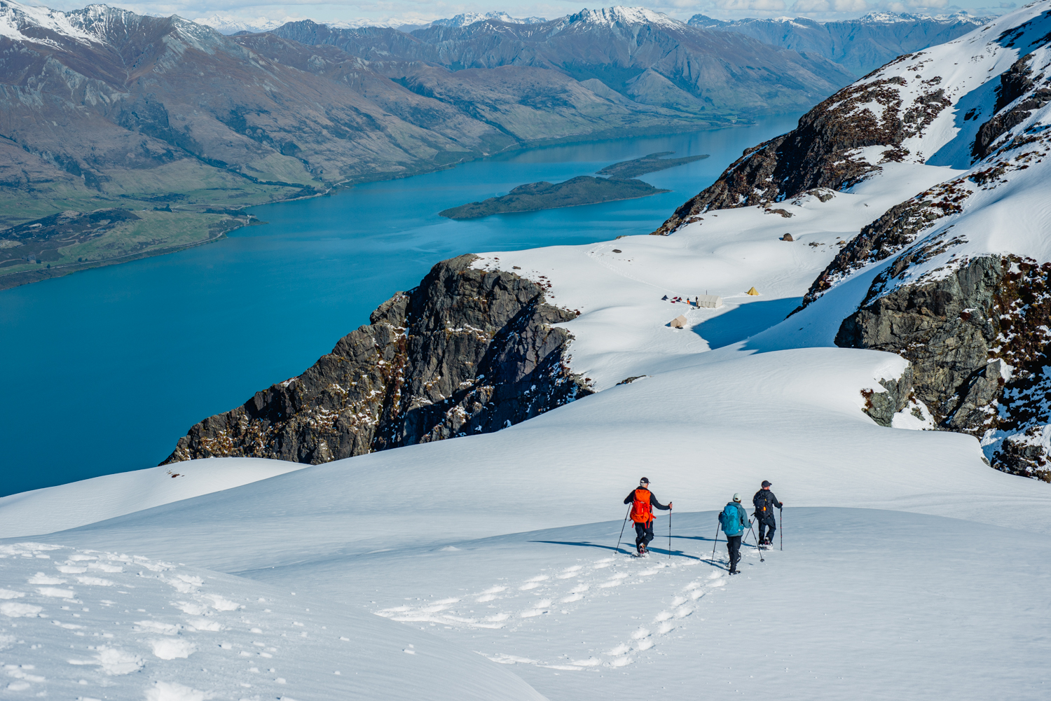 An early helicopter ascent delivers you into New Zealand's UNESCO World Heritage backcountry for a snowshoeing expedition to your overnight camp*. All technical gear and sleeping quarters are prepared before your arrival. Base Camp's signature dishes are cooked over fire in the mountains.