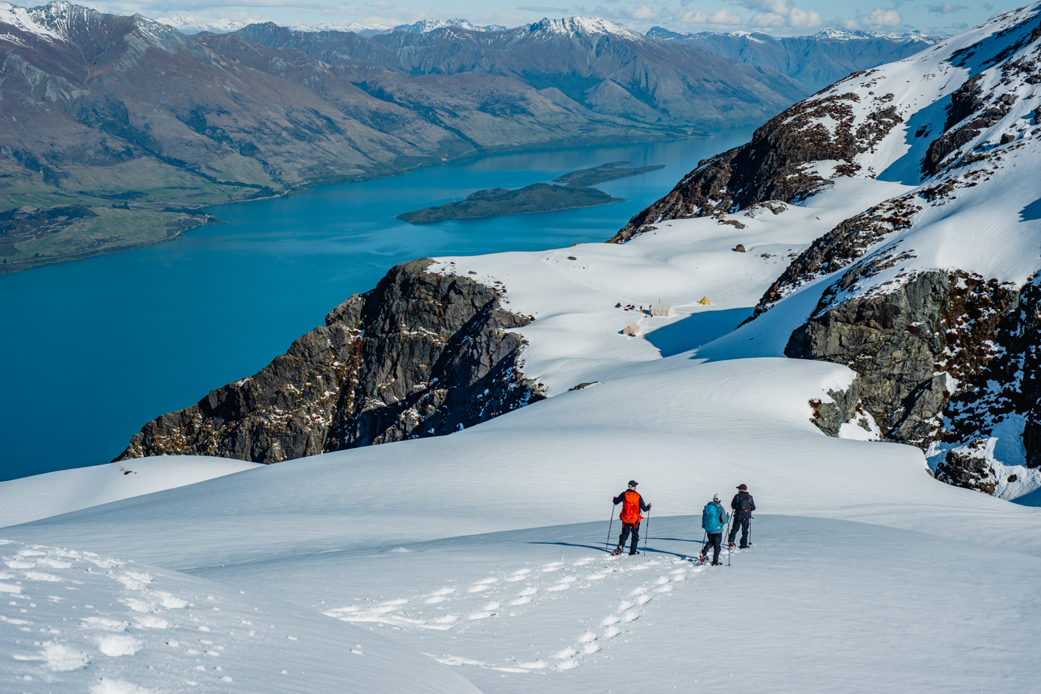 Our itinerary involved snow-shoeing and photo-taking. Yours might involve Central Otago wine-drinking, overlooking the valley's theatre of light. The mountaintop is yours to do as you please.